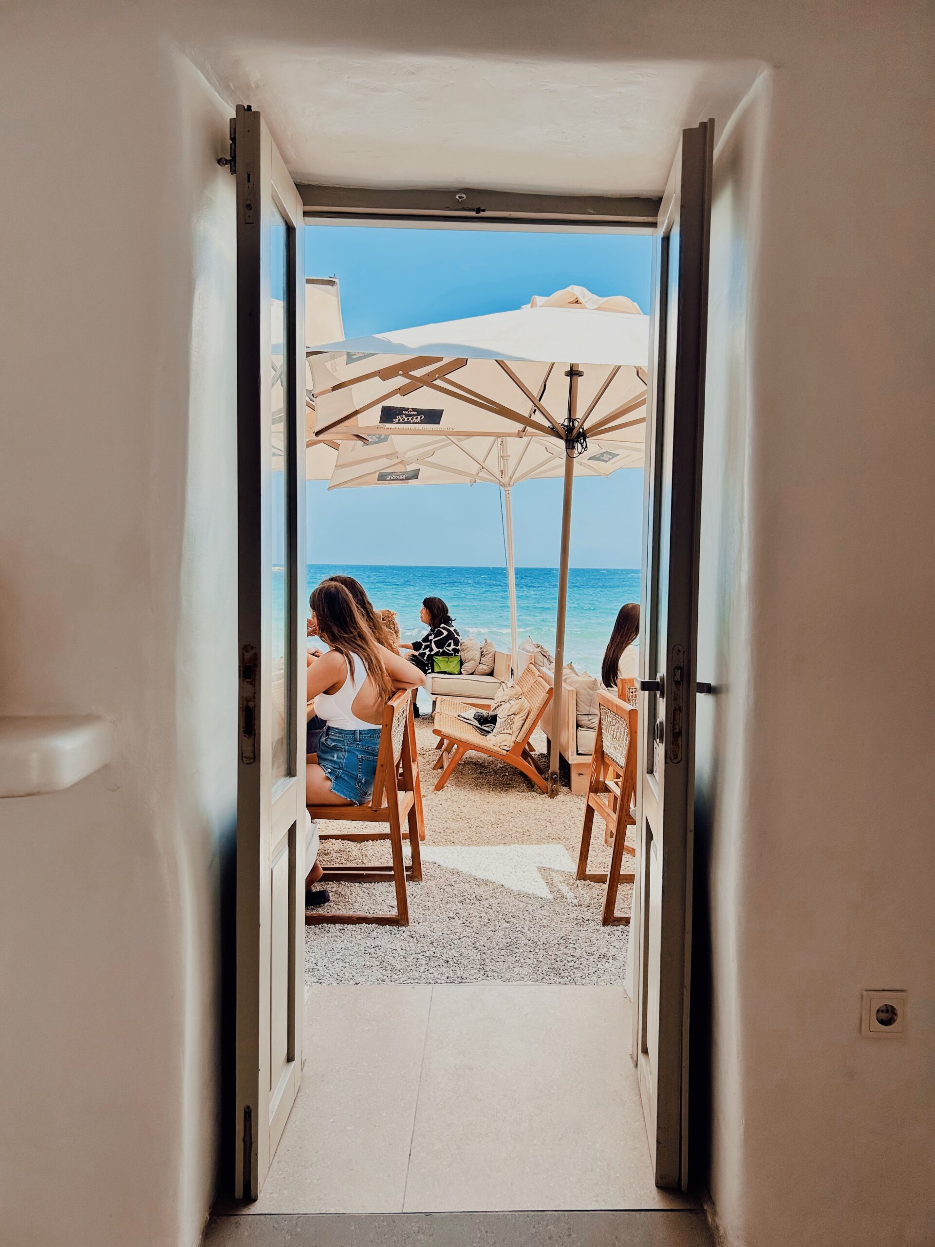 After picking up my car rental the next day, I headed out to a swanky beach bar: Crios Paros. A stunning setting against Crios Beach with comfortable loungers, a gourmet menu and evening beach parties. I was going to swim in the sea and hunt….for the likeminded.